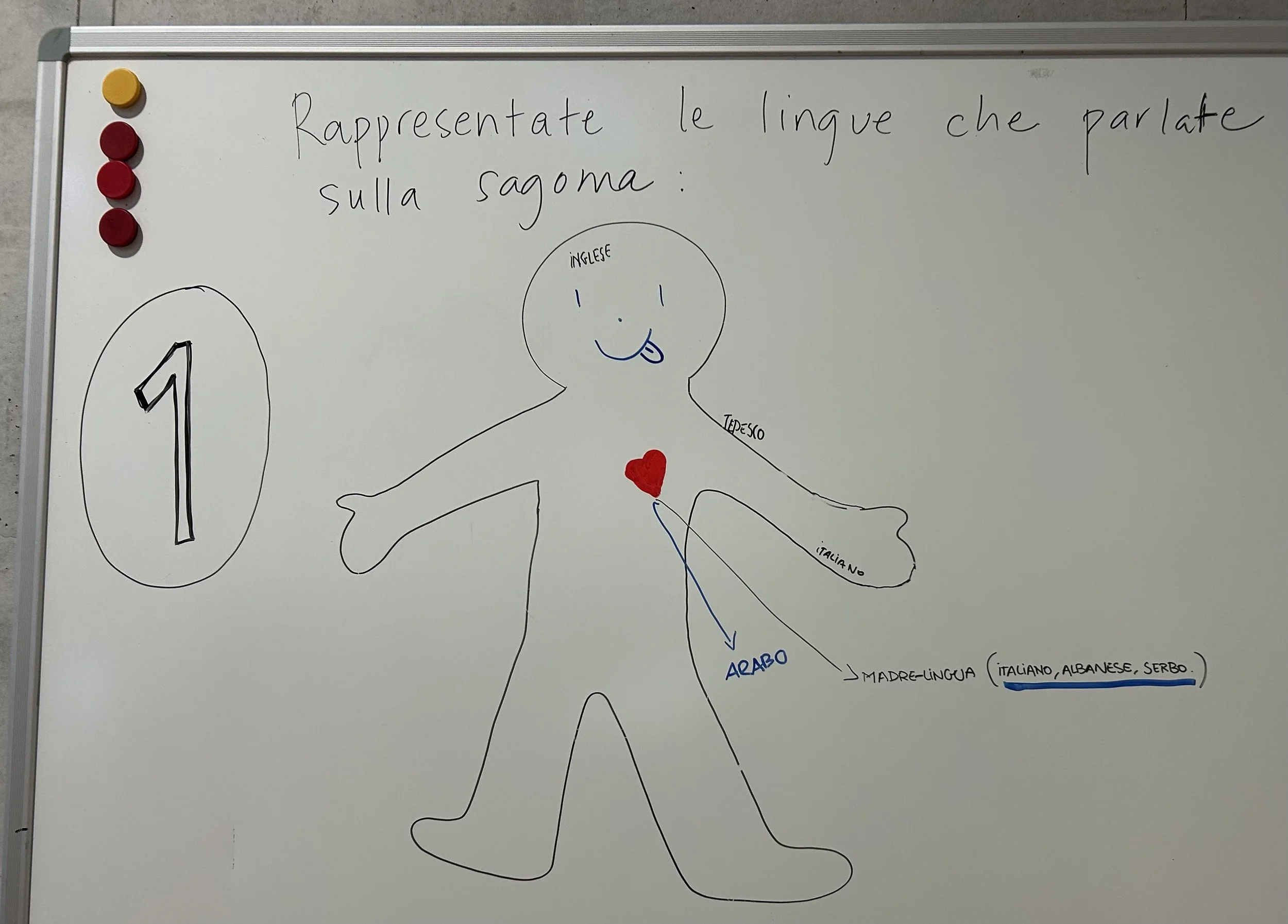 Rappresentate le lingue che parlate sulla sagoma (task simbolico —> orientato al valore di / legame affettivo con le diverse lingue che gli studenti usano)